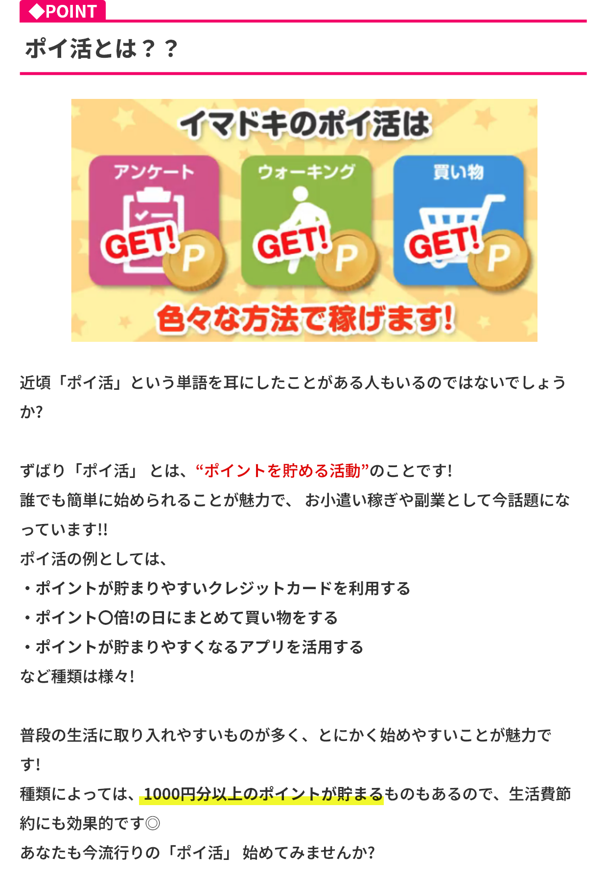 ポイ活について詳しく説明があるので、初めてでもすぐに理解でき、スムーズにポイントを貯められました。